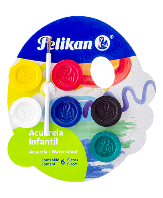 Pinturas de acuarela para niños, con 6 tonos de colores, brillantes e intensos, mezclables entre sí. Las pastillas no se fracturan ni se corren, gracias a su alta calidad. Los colores se vuelven brillantes con poca agua. No tóxico. Ideal para uso escolar.