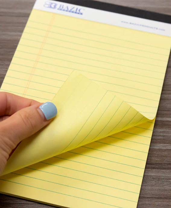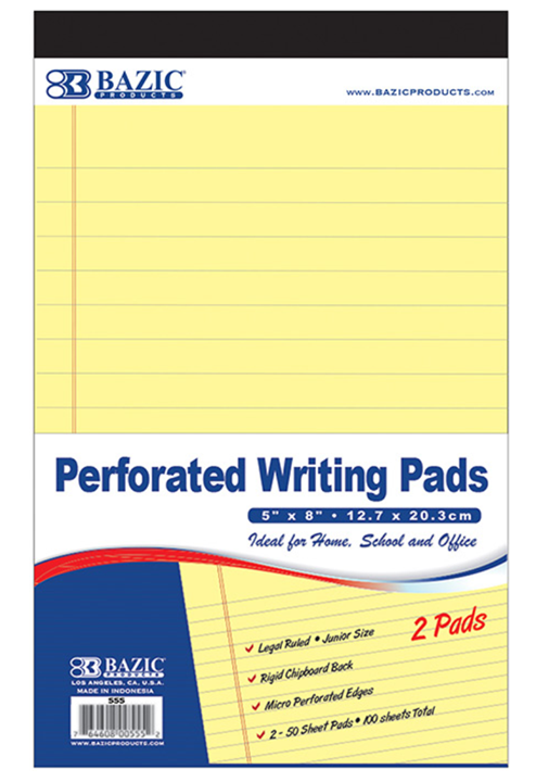 Bloc de notas perforado, 5.0 x 8.0 in, 50 unidades (paquete de 2) Color amarillo canario. 50 hojas por bloc. 2 almohadillas por paquete. Espacio entre líneas de 5/16. Legal dictaminado. Papel estándar y liso de 56 g/m7/15 lb. El tamaño para arrancar es de 7″ x 5″. El bloc de notas cuenta con un fuerte respaldo de cartón que proporciona estructura y una superficie de escritura resistente para tomar notas mientras viaja