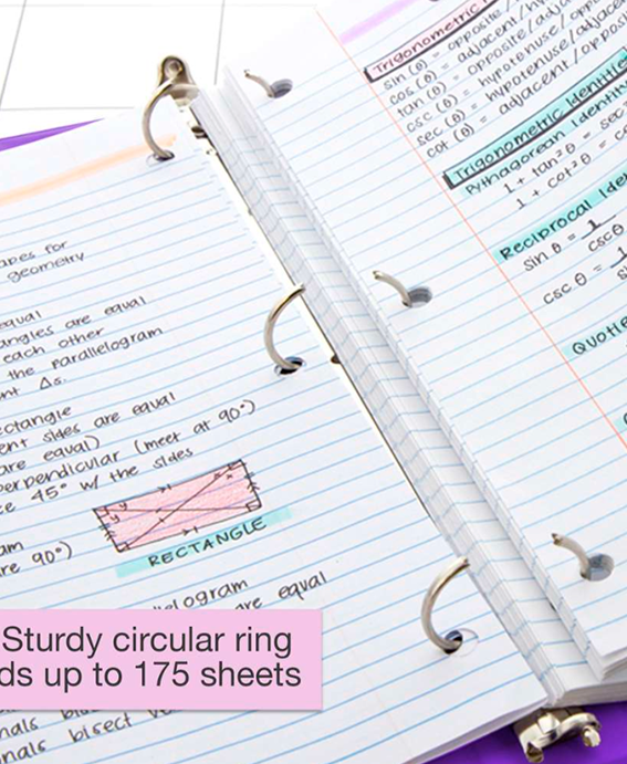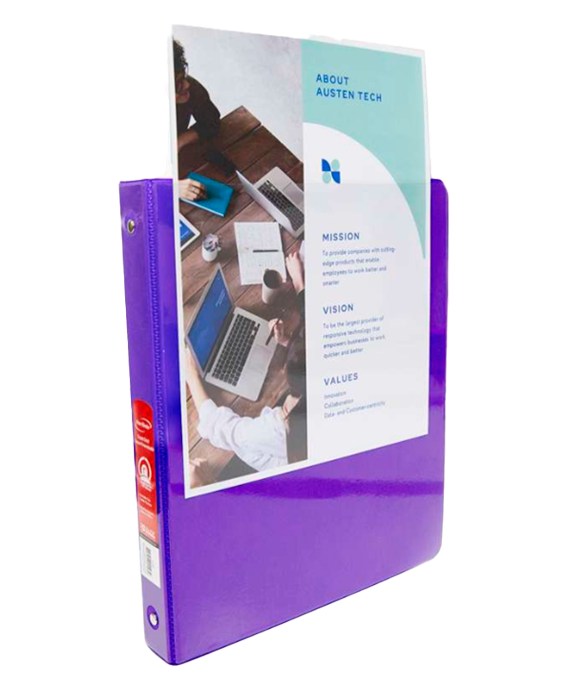 Carpeta de 1″ morada 3 aros con 2 Bolsillos, La carpeta de 1 pulgada puede contener hasta 175 hojas/ papeles. Los anillos se abren y cierran fácilmente para agregar páginas según sea necesario.arpetas perfectas para las necesidades de suministros escolares, Diseñado y fabricado con mayor durabilidad con una cubierta resistente a desgarros con cubiertas transparentes.
