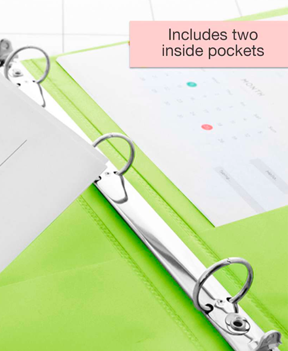 Carpeta de 1″ verde lima 3 aros con 2 Bolsillos, La carpeta de 1 pulgada puede contener hasta 175 hojas/ papeles. Los anillos se abren y cierran fácilmente para agregar páginas según sea necesario.arpetas perfectas para las necesidades de suministros escolares, Diseñado y fabricado con mayor durabilidad con una cubierta resistente a desgarros con cubiertas transparentes.