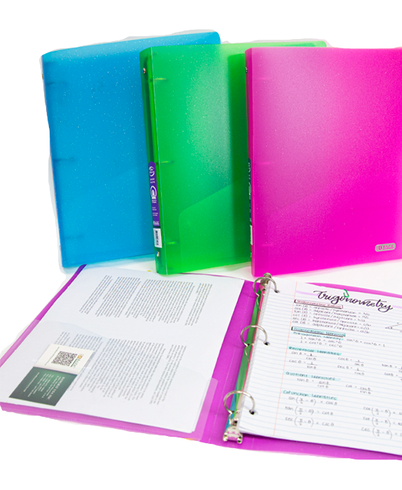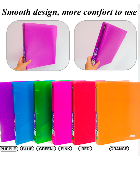 Carpeta de 3 aros de poliéster con purpurina de 1″ con bolsillo. La carpeta de 1 pulgada puede contener hasta 175 hojas/papeles. Los anillos se abren y cierran fácilmente para agregar páginas según sea necesario.perfectas para las necesidades de suministros escolares, diseñado y fabricado con mayor durabilidad y con una cubierta resistente a desgarros.