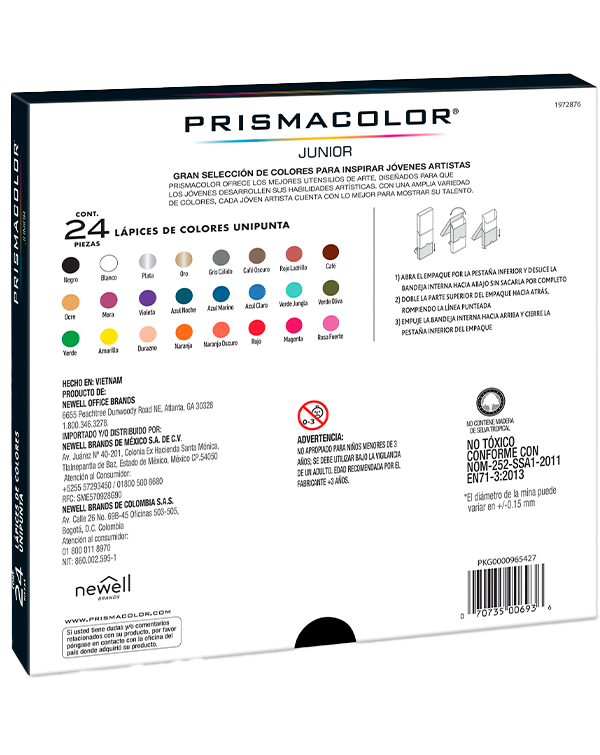 Colores Prismacolor junior en tonos intensos, 24 piezas con punta resistente de 4.0 mm, No toxicos