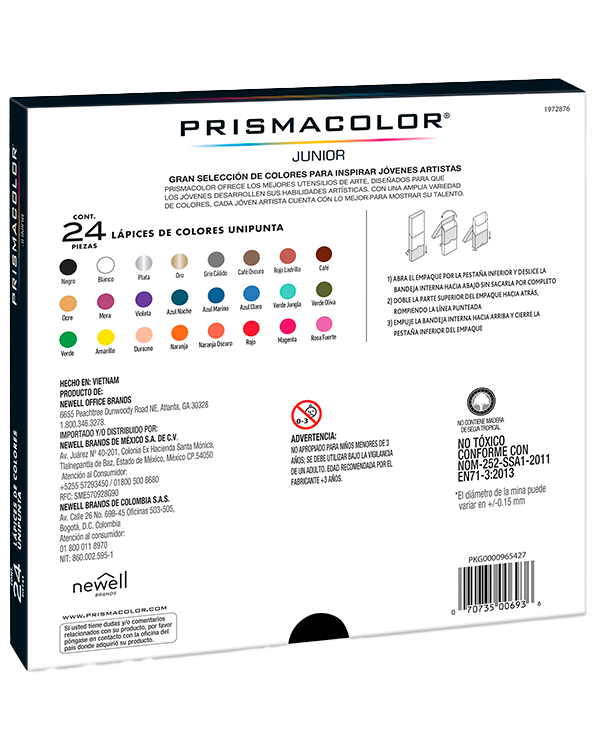 Colores Prismacolor junior en tonos intensos, 48 piezas con punta resistente de 4.0 mm, No toxicos