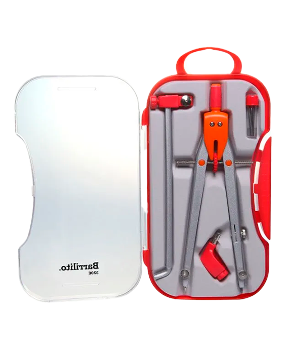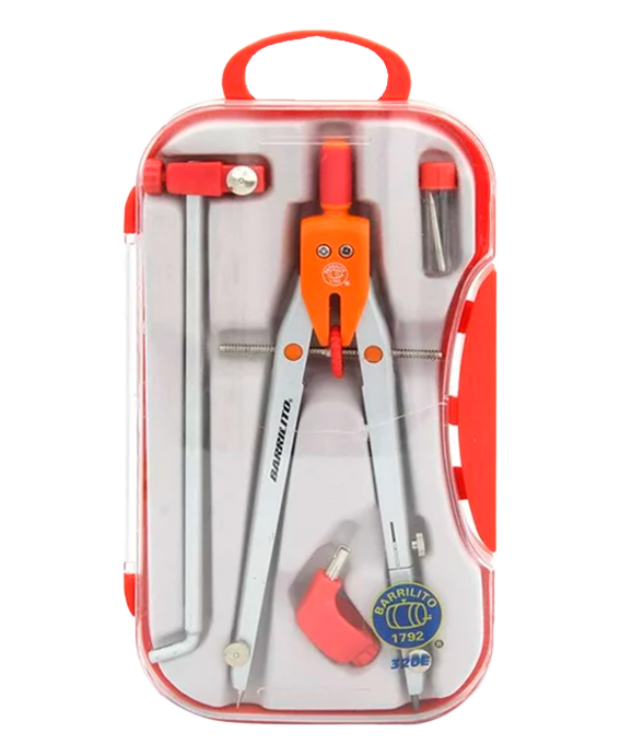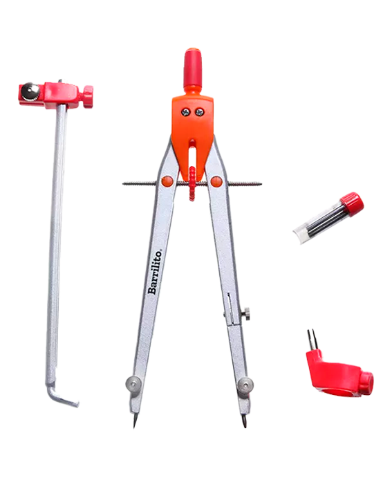 Compás de precisión metálico de brazo largo, Con accesorios, 30 cm de radio máximo. Presentación: estuche para transportar.