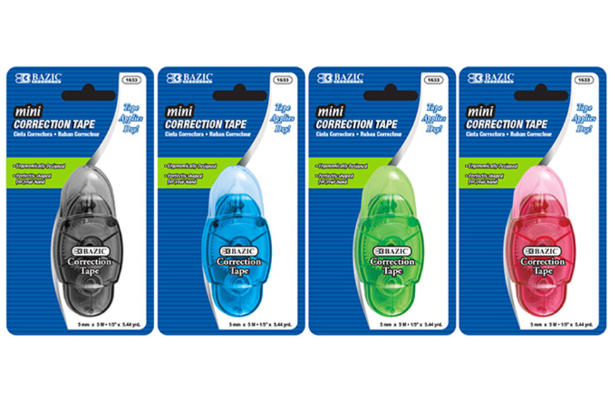 “Cinta Correctora Mini 5 mm x 196″ con Tapa Protectora. Cinta correctora a base de película de alta calidad, muy fácil de aplicar y sin ensuciar.Sin olor es una alternativa ideal. Proporciona correcciones limpias sin pinceles sucios ni botellas derramadas. Cobertura de línea única. No recargable.”