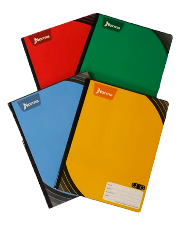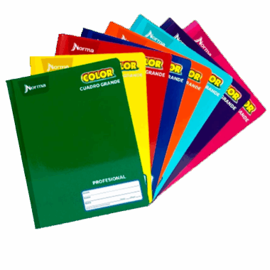 Cuaderno cosido profesional marca Norma uno de cuadro 7 (medida estandar) con diferentes colores con etiqueta identificadora para agregar nombre, grado, grupo y materia cuenta con 100 hojas, con tapa flexible
