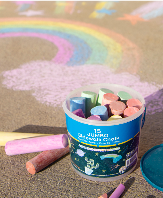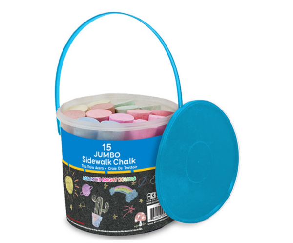Tiza de color, gigante con 15 piezas, cada uno mide 4,2″ de largo por 0,9 ” de diámetro. Viene con un cubo con asa para que el niño pequeño pueda divertirse al aire libre. Ideal para escuela.