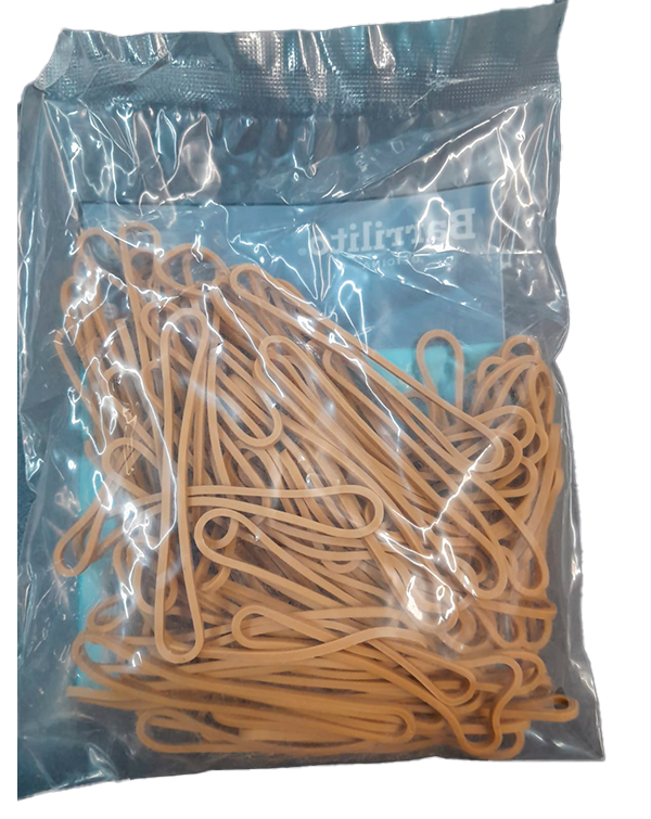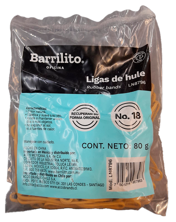 Ligas naturales del no. 18, Recuperan su forma origina, es elástica y suave al uso. Bolsa con 80 g de ligas.