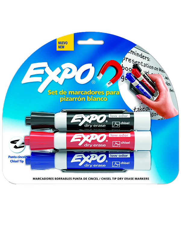 Marcadores expo de punta de cincel con 3 piezas y un borrador magnetico