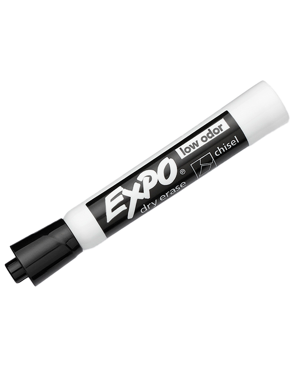 Marcador expo color negro punta mediana de borrado en seco con tinta a base de alcohol, escriben en pizarra blanca y la mayoria de superficies no porosas