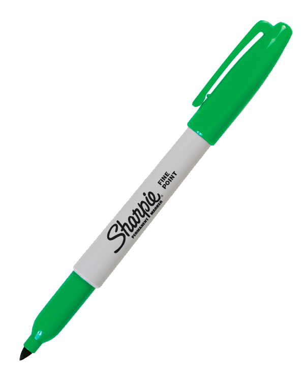 Marcador permanente sharpie de punta fina en color verde, Marca en la mayoria de las superficies con tinta de secado rapido y resistente a la decoloracion y al agua