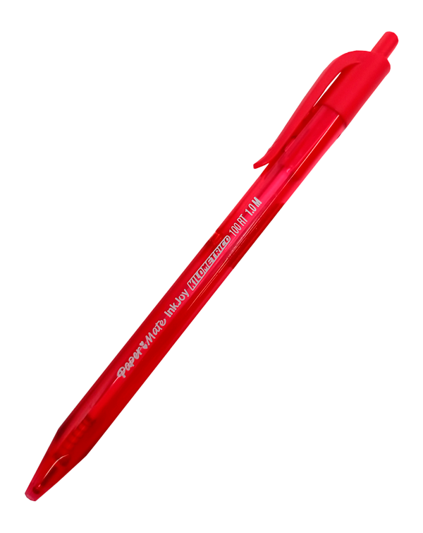 Pluma kilometrico papermate 100 retractil con punta de 1.0 m color rojo Con un sistema de escritura suave que distribuye la tinta fácilmente
