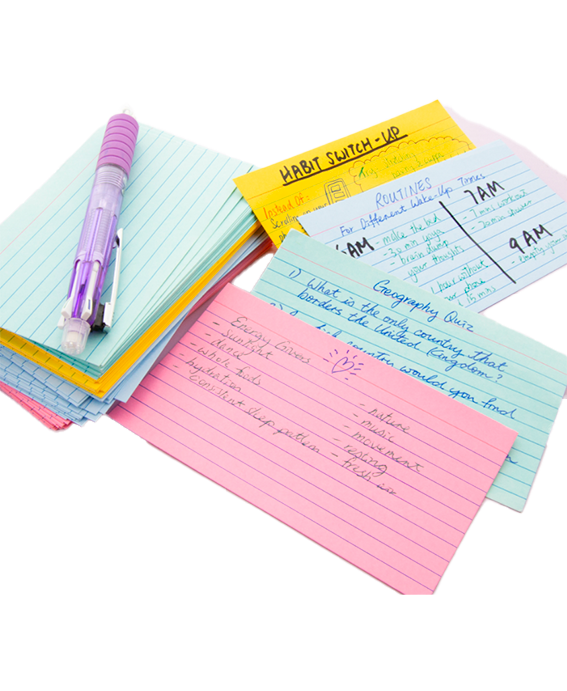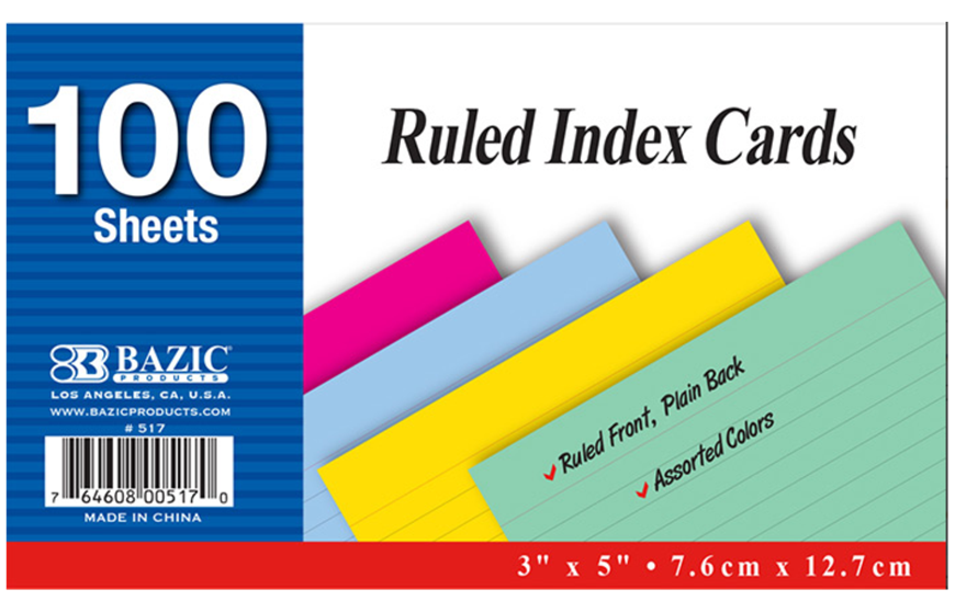Tarjeta de índice con rayas vienen en una variedad de colores con 100 hojas en total por paquete. Las fichas tienen un frente rayado y un reverso liso. Tamaño: 3″ x 5″ pulgadas: 7,6 cm x 12,7cm. Perfecto para uso en el hogar, la escuela y la oficina, ildeal para crear listas de tareas pendientes, tarjetas de estudio, extractos personales, tarjetas de presentación, recordatorios rápidos,