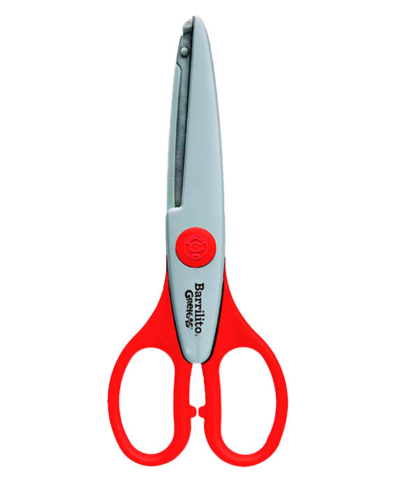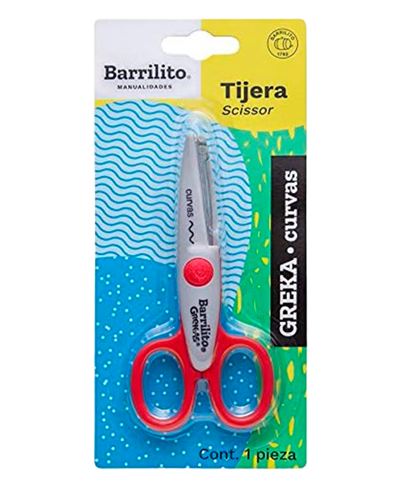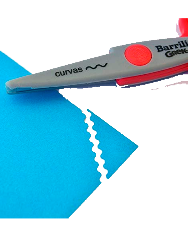 Tijeras Grekas, Corte tipo curvas, Punta roma, Mangos de plásticos, Hojas de acero inoxidable.