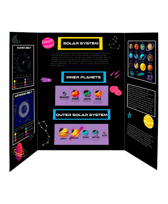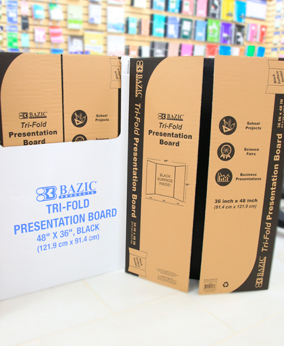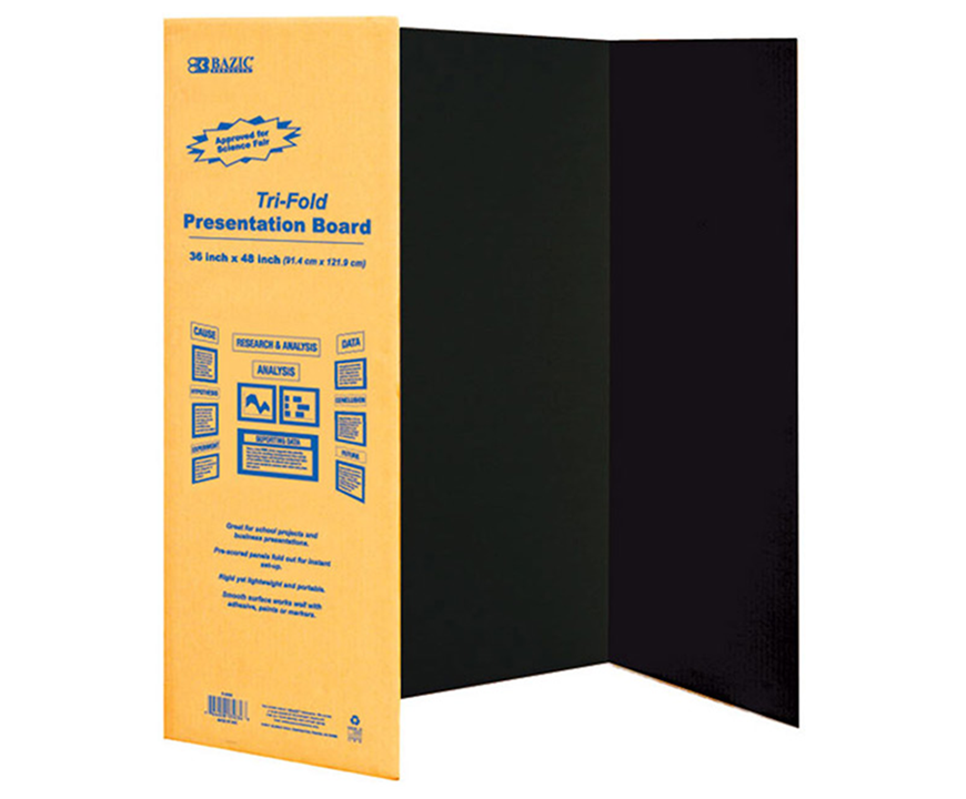 “Tablero de presentación corrugado triple color negro con tamaño de 36 X 48 pulgadas. Libre de ácido. Espesor: 1/8″”. Pared simple con flauta B.Aspecto duradero, bellamente acabado y profesional, Perfecto para proyectos escolares.”