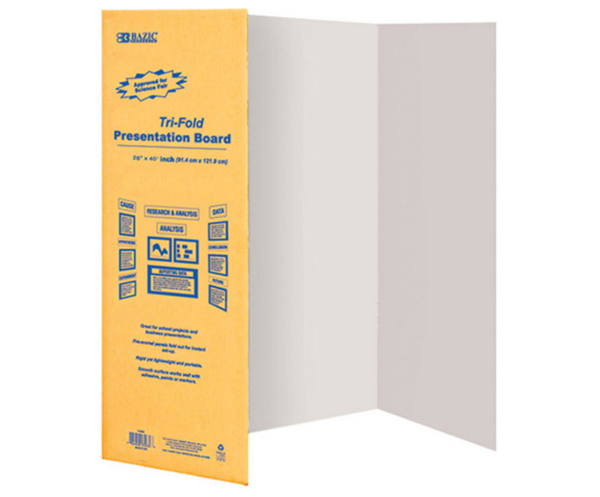 “Tablero de presentación corrugado triple color Blanco 28″” X 40″” pulgadas. Espesor: 1/8″”. Pared simple con flauta B.Aspecto duradero, bellamente acabado y profesional, Perfecto para proyectos escolares.”